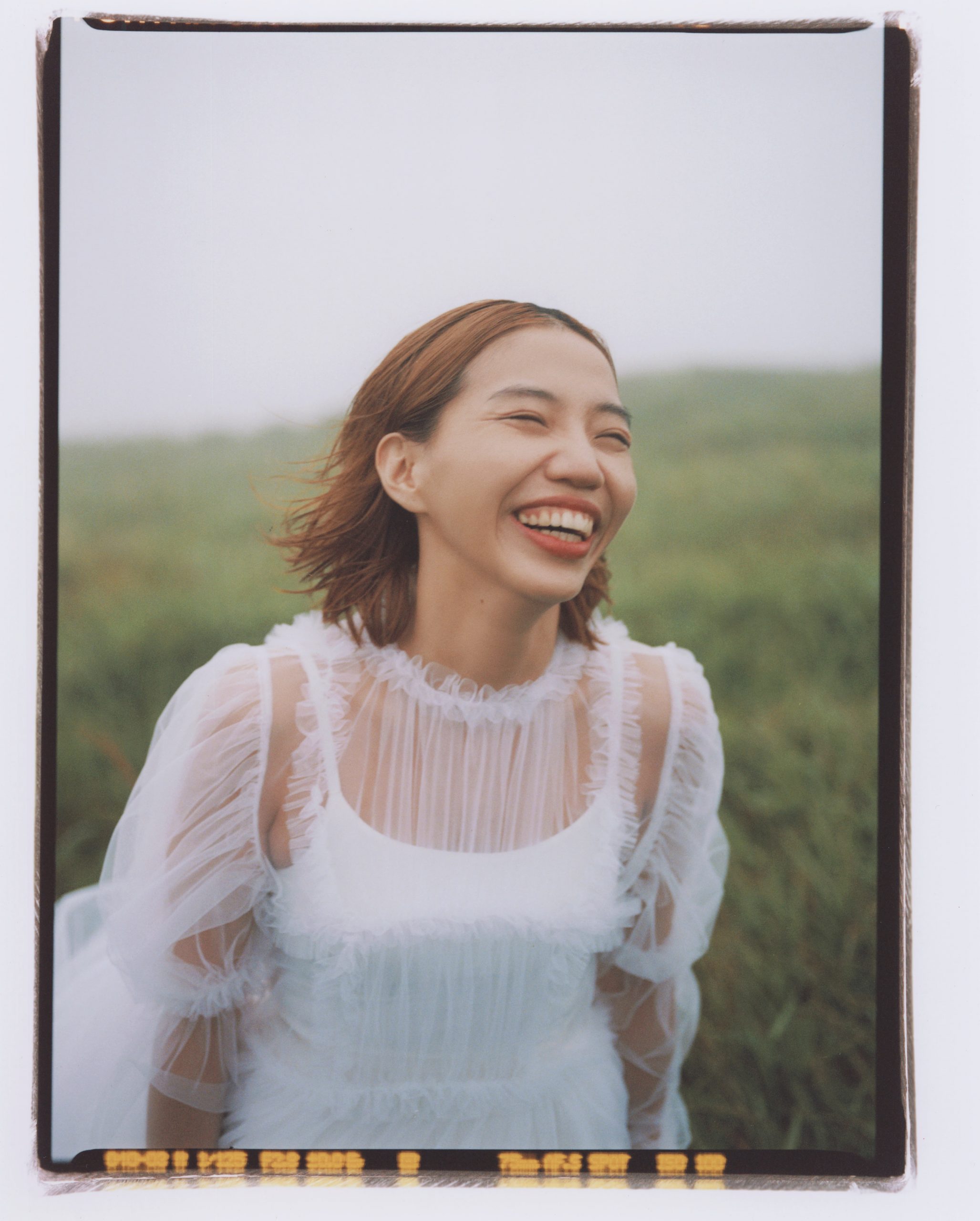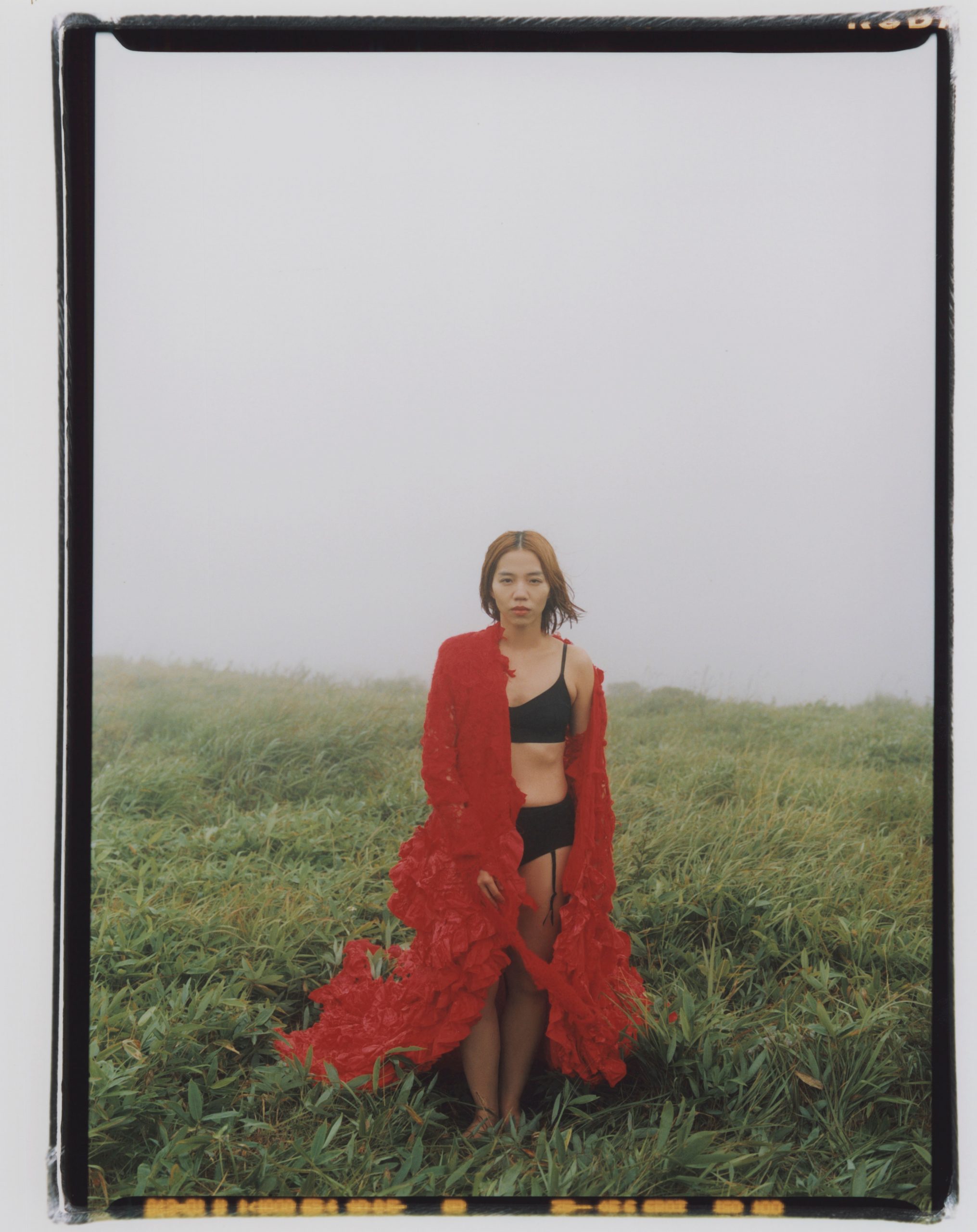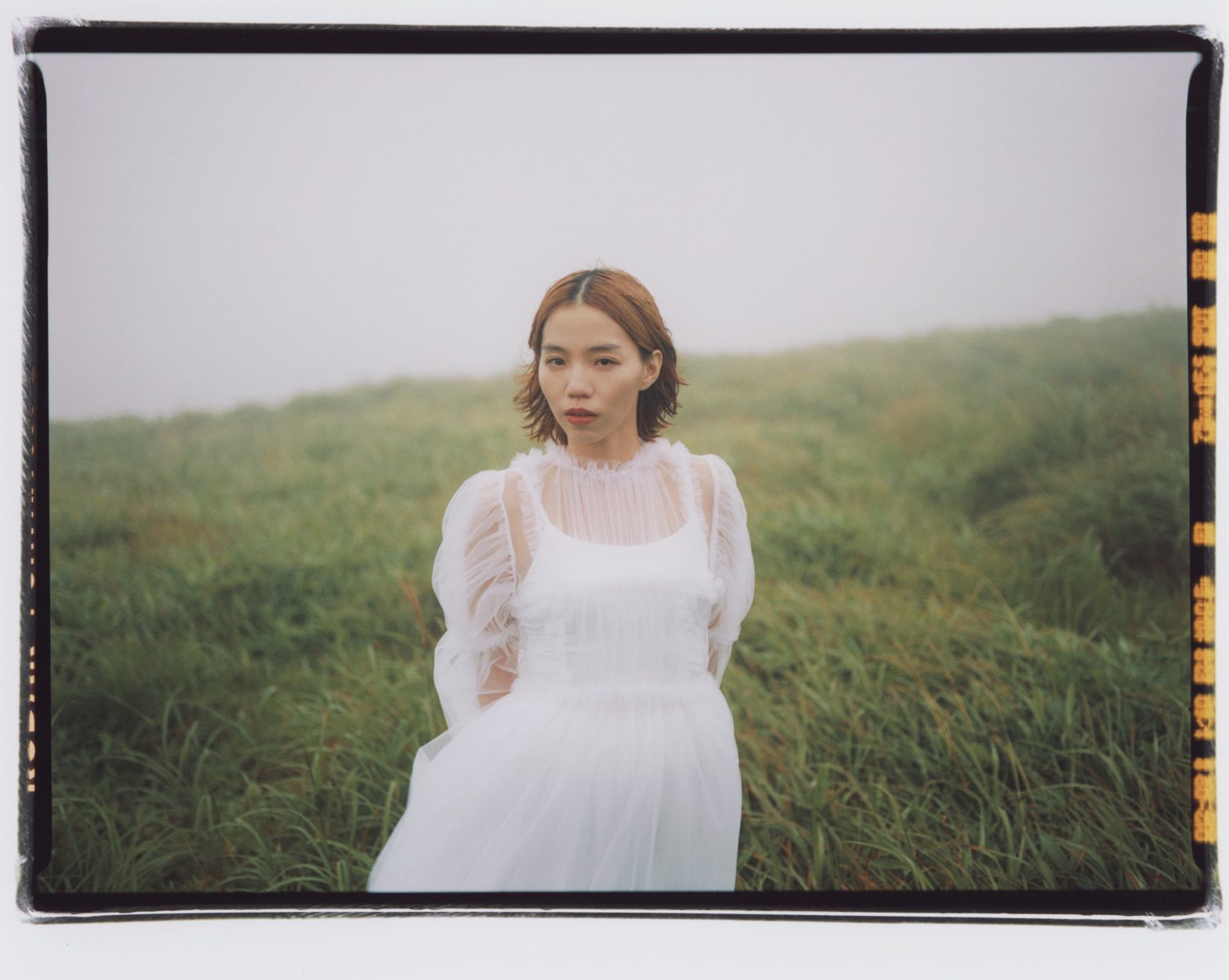在 Yuji Watanabe 掌鏡下,時間彷彿在底片中被凝結,自成一個世界,看起來十分寧靜,完全感受不到當下拍攝現場的狂風暴雨。主視覺中的洪佩瑜看起來與天地合為一體,在霧中專注地凝視與被凝視,像是有一個超現實的時空被打開了。