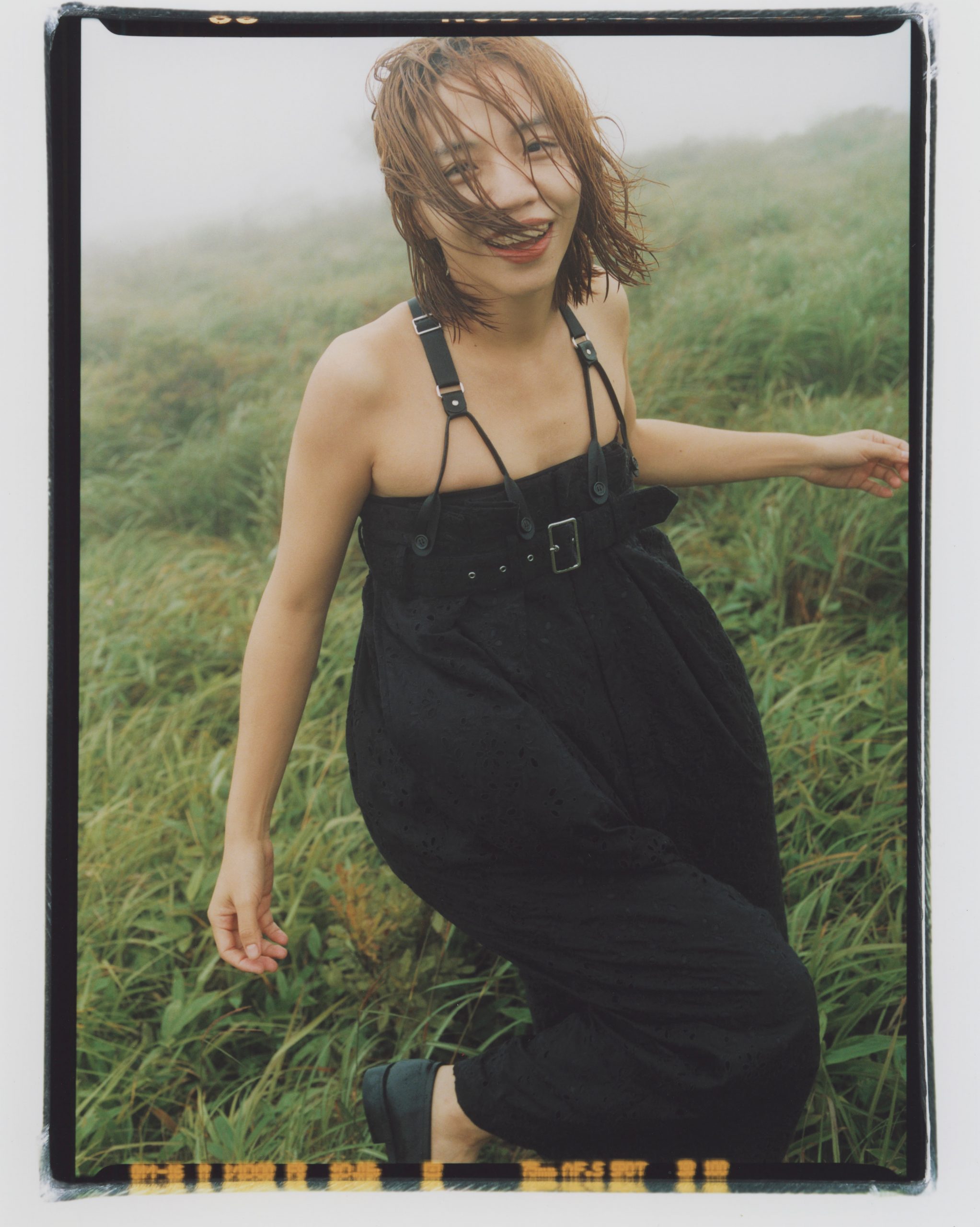 主視覺拍攝選在長野霧峰山進行,攝影師 Yuji 扛來了大型蛇腹古董相機,選用拍立得成像與現場微型暗房調像的方式進行拍攝。霧峰山以雲霧繚繞的山景聞名,為了捕捉最多雲的畫面,團隊必須在半夜 2 點就從東京出發上山,才能趕上清晨抵達海拔 1600 公尺的山區,捕捉雲霧最多最美的時候。好不容易抵達山頂,開拍後天氣突然驟變,溫度急速下探到 15 度,洪佩瑜依舊敬業地上場,僅穿著很薄的造型服裝,在嚴峻氣候中完成拍攝。