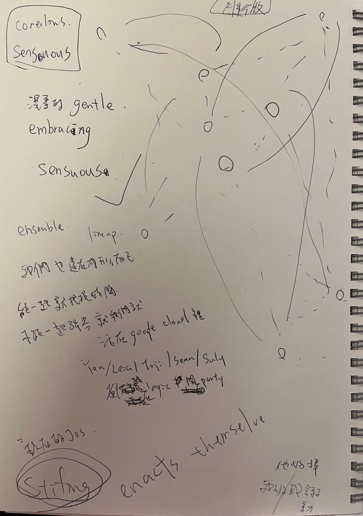 專輯封面構思也延續拼貼與流動感。從 Yen 與 Suly 簡單的手稿開始,嘗試做成立體浮雕的質感。此外,裝幀部分依舊想邀來好友王曈協作,從第一張 EP《Sunshade》開始,他便是野巢的長期夥伴。團員笑說,他們就像許多重疊的圓圈,各自有主要的責任,卻總能彼此補位,讓整體保持流動。於是,這張專輯早已超越單純的音樂範疇,成為聲音、影像與裝幀彼此交織的多媒體實驗。