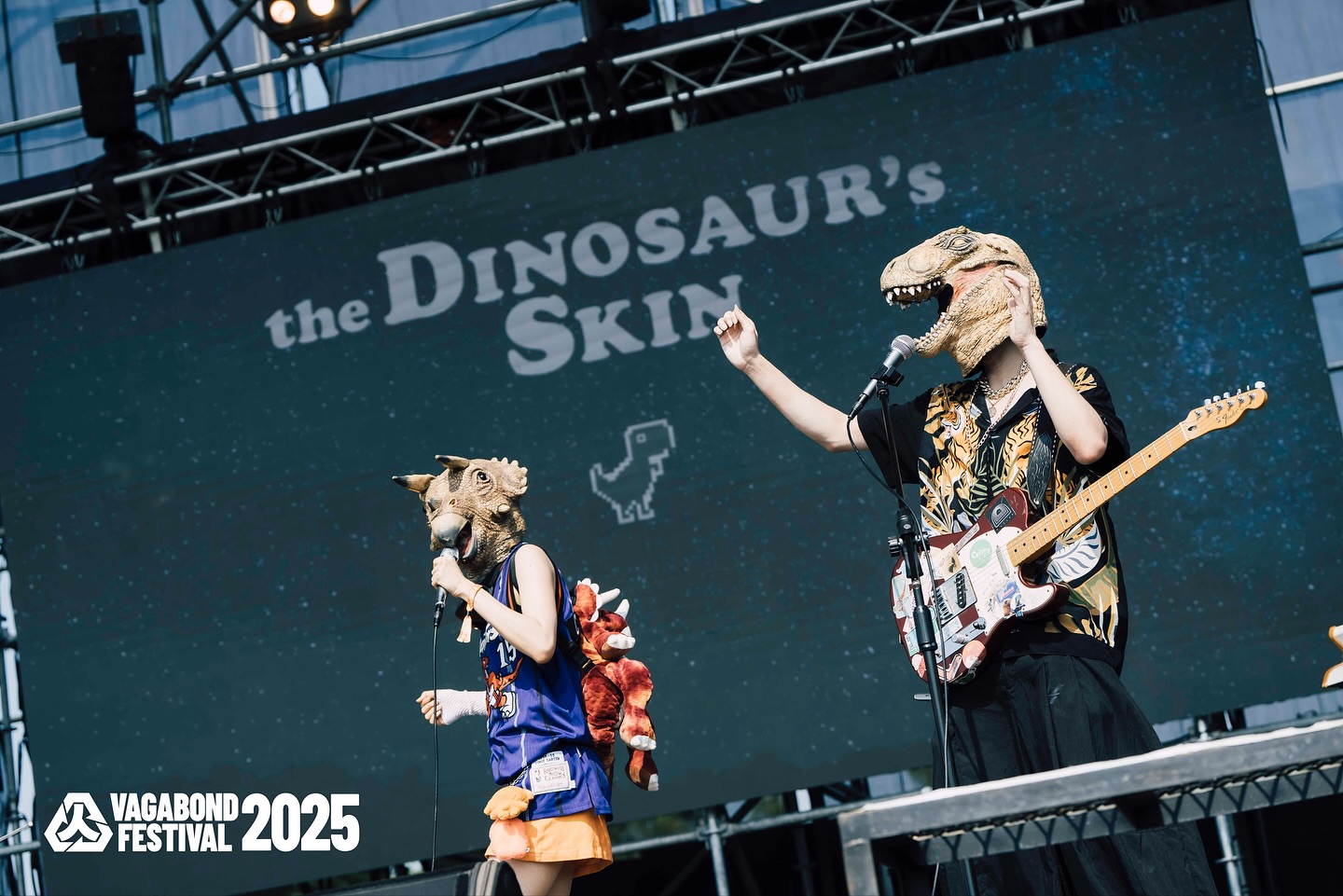 打起精神後,我轉往劍獅舞台,探究恐龍的皮是否能耐得住地球的熱氣,沒想到台下也聚集著一群恐龍,角龍興奮地和台下的朋友揮手,「帶來酷暑人的表演!」一句諧音雙關讓全場笑聲此起彼落。VJ 放映著 Google 小恐龍的遊戲畫面,台下觀眾也跟著節拍一同「碰碰跳」,形成一場跨物種共榮的歡樂社會。