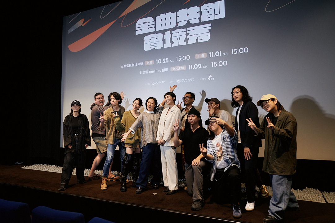 由文化部、臺北流行音樂中心(北流)與公視攜手合作的華語音樂實境節目《金曲共創實境秀》,今(10/23)日於松菸誠品電影院舉辦首映會暨記者會。