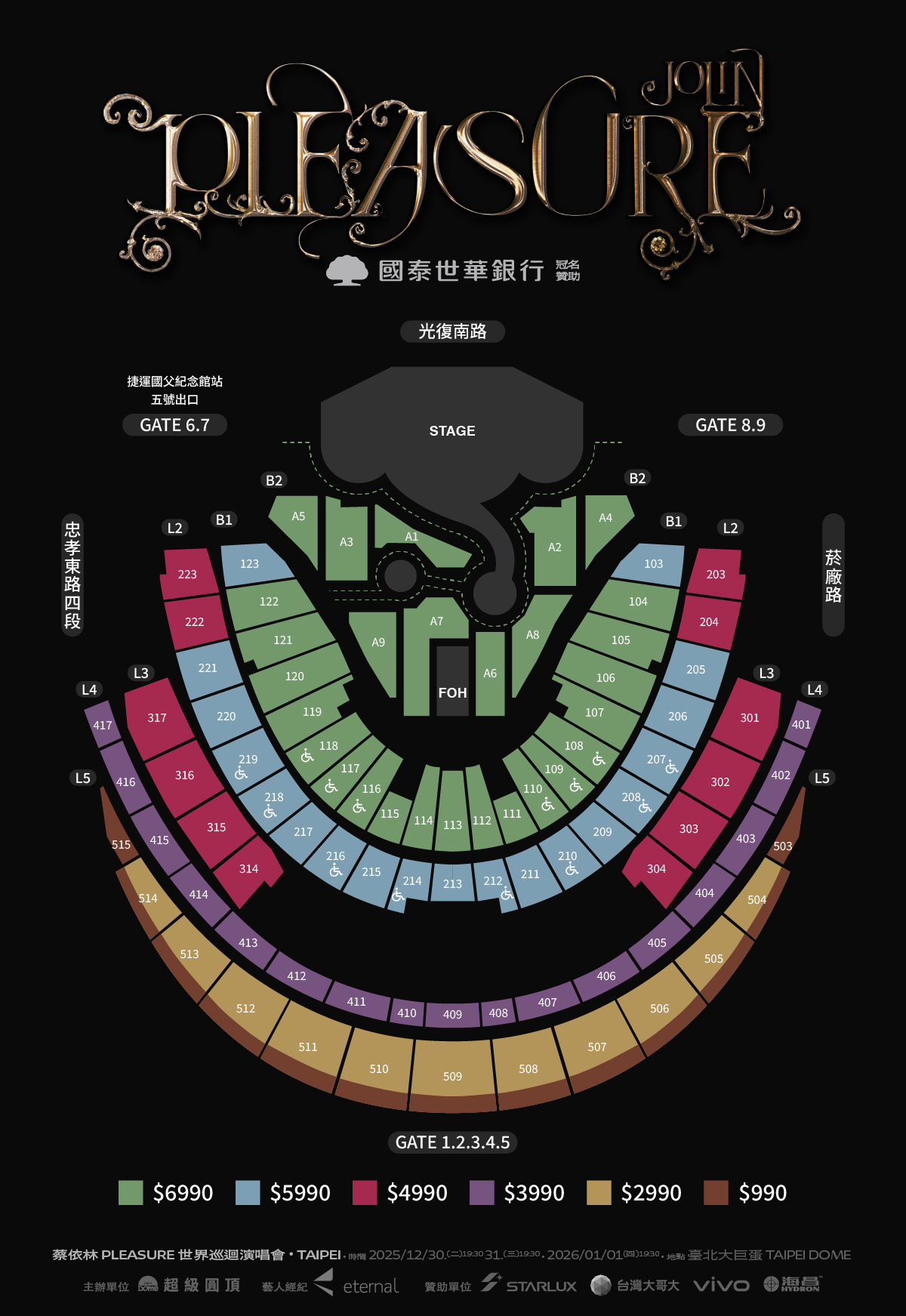 蔡依林宣布將於 12 月 30、12 月 31 日,及 2026 年 1 月 1 日一連三天「攻蛋」登上臺北大巨蛋舉辦【國泰世華銀行 JOLIN 蔡依林 PLEASURE世界巡迴演唱會 TAIPEI 2025-2026】,出道 26 年首次唱進大巨蛋的她將化身主宰慾望與自由的「愉悅之母」降世,以《PLEASURE》為名親手建構出一座匯集慾望與快樂的奇幻「人間樂園」。