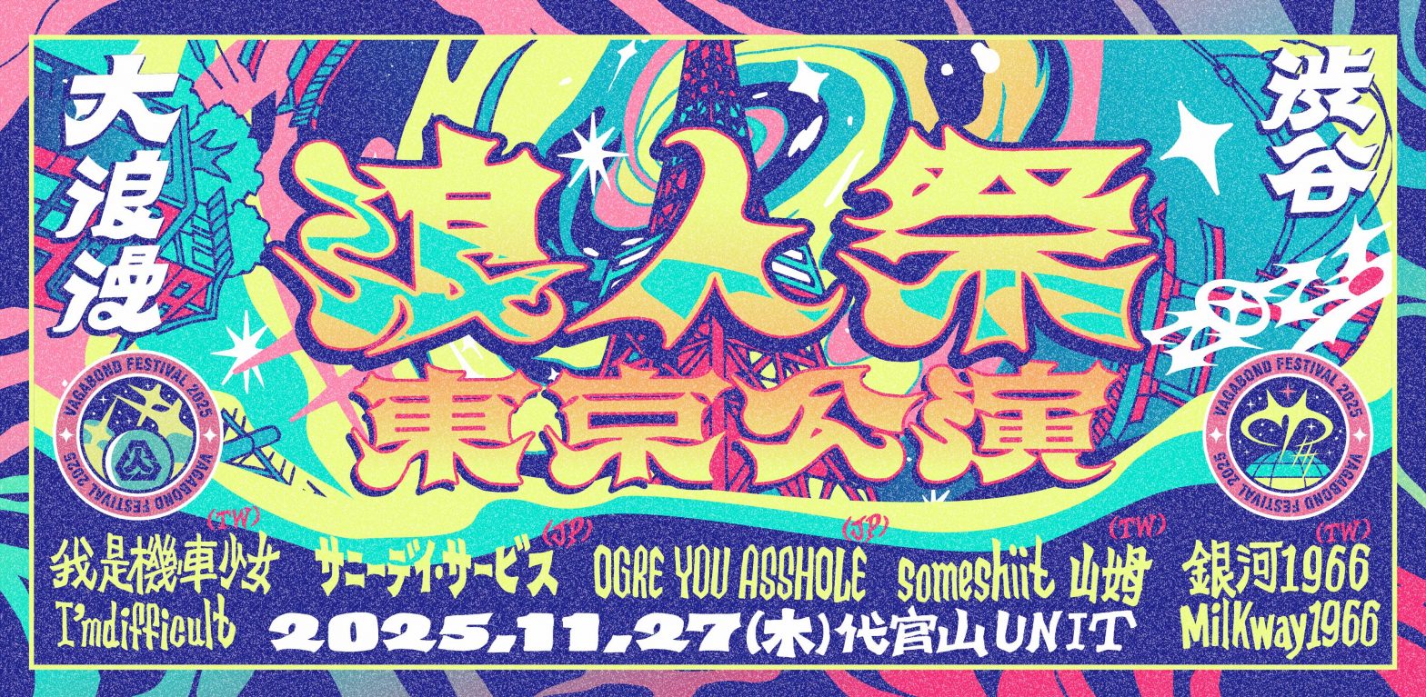 日本陣容則力邀曾於 2023 浪人祭登台演出並造成轟動的日本傳奇搖滾樂團 Sunny Day Service,以及另類迷幻搖滾樂團 OGRE YOU ASSHOLE 共同演出,將過去累積的跨國合作經驗轉化為海外實體活動,拓展浪人祭的版圖,展開台日音樂交流的新篇章!