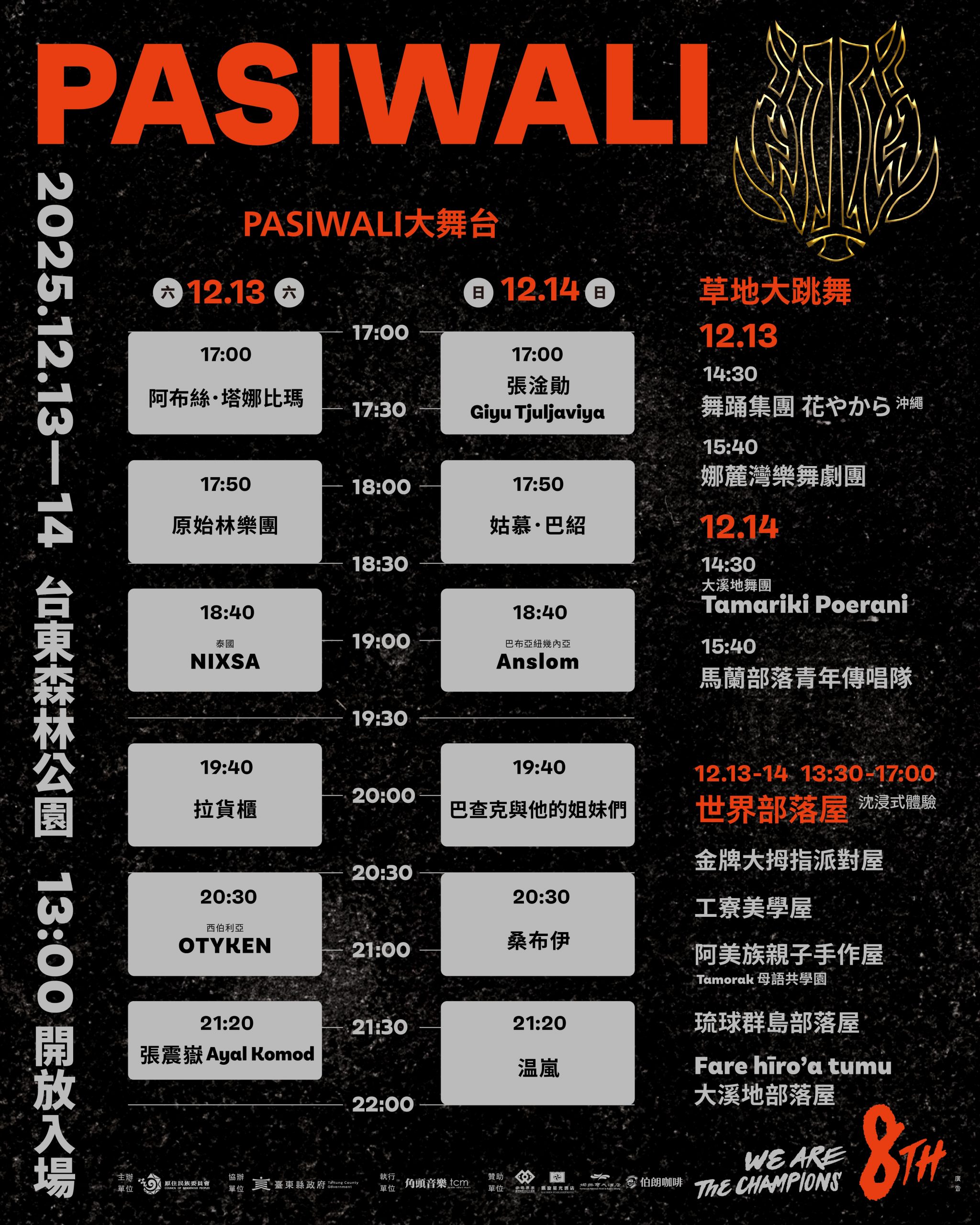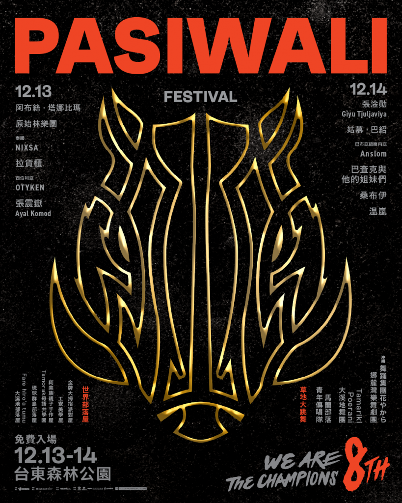 由行政院原住民族委員會主辦、角頭音樂承辦的 PASIWALI 音樂節,是亞洲原住民族最具指標性之國際音樂盛事,今年邁入第八年,帶著本屆主視覺及主題「We are the CHAMPIONS」強勢回歸,將於 12 月 13、14 日在臺東森林公園盛大舉辦。