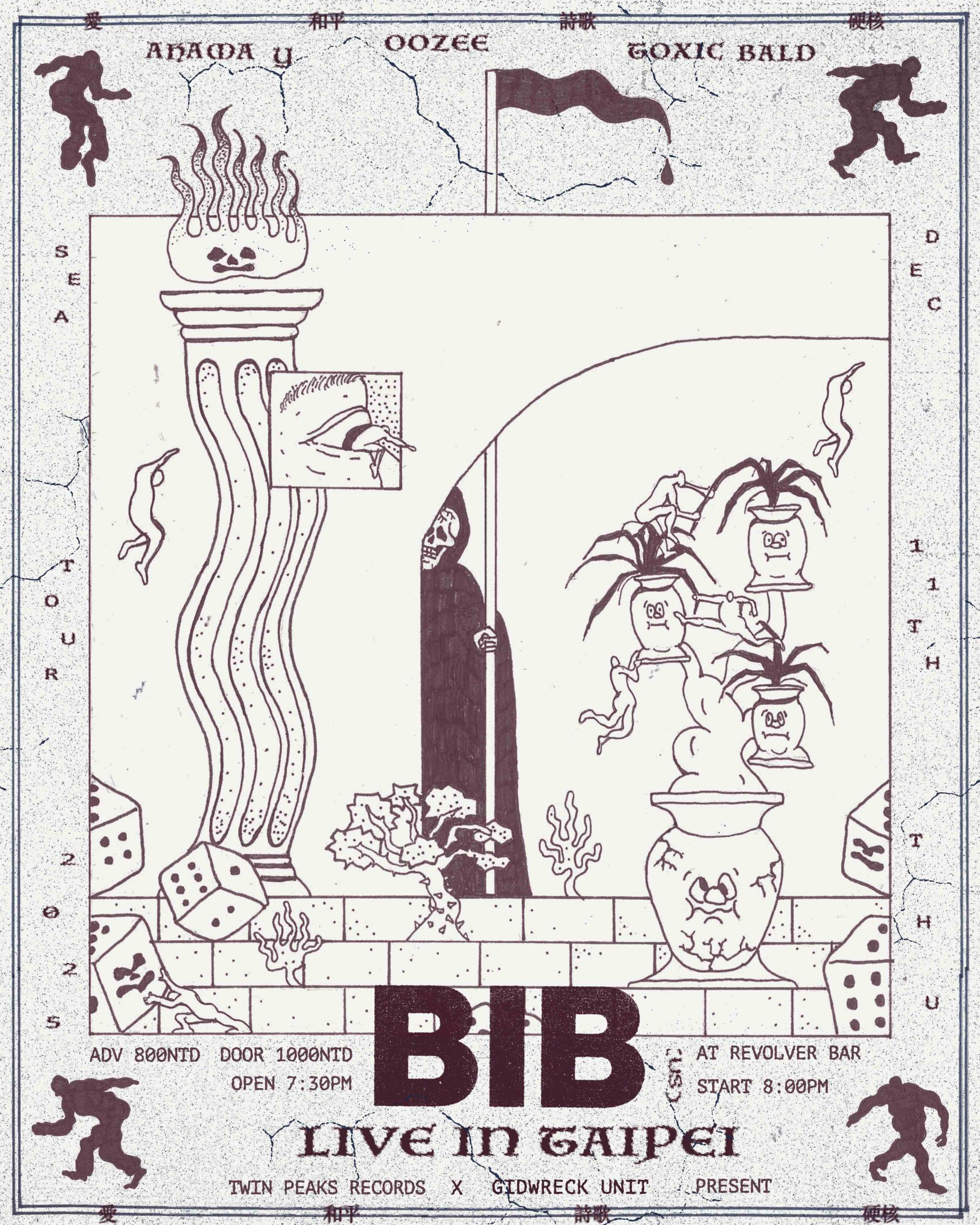 雖然這次是首次造訪亞洲,台北場景早已有與 BIB 產生共鳴的樂團,如合成器龐克 OOZEE、怪奇龐克 AHAMA Y,以及沈寂兩年後甦醒的河童鄉 Toxic Bald。他們將與 BIB 一同在 12 月 11 日邀請你在心跳加速與腿軟之間對抗寒冬。