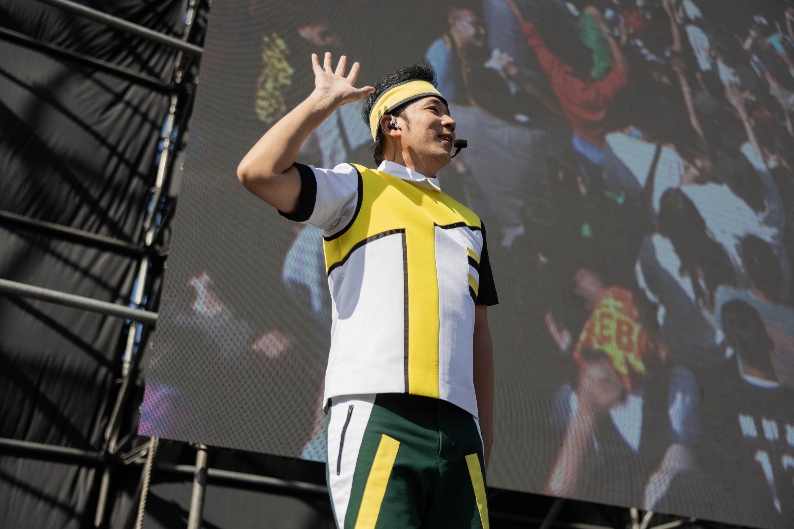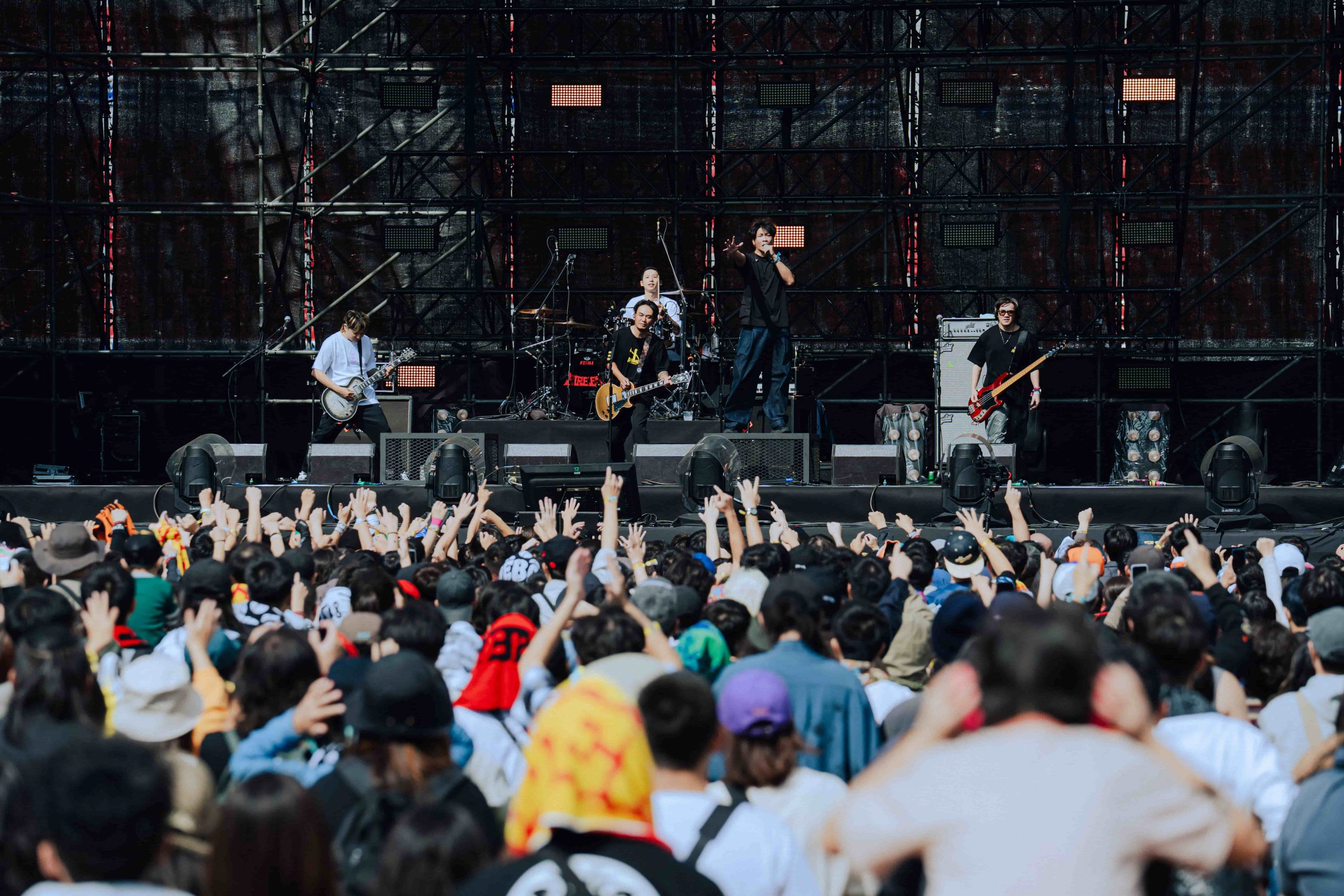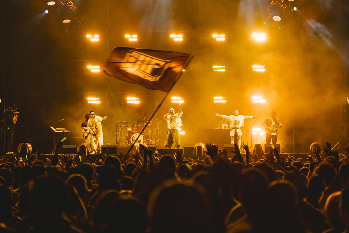 「火舞台」壓軸登場的日本龐克搖滾天團 WANIMA,被稱作「熱血的代名詞」。2010 年成立於日本熊本,是少數能把主流市場與龐克樂迷同時收服的樂團。甫登台便甩出多首金曲,包含《七大罪 戒律的復活》主題曲〈シグナル〉、電影《ONE PIECE FILM GOLD》主題曲〈GONG〉,主唱 KENTA 丟下一句:「我只說一件事喔-今天要跳舞!」便繼續演唱激昂演唱。