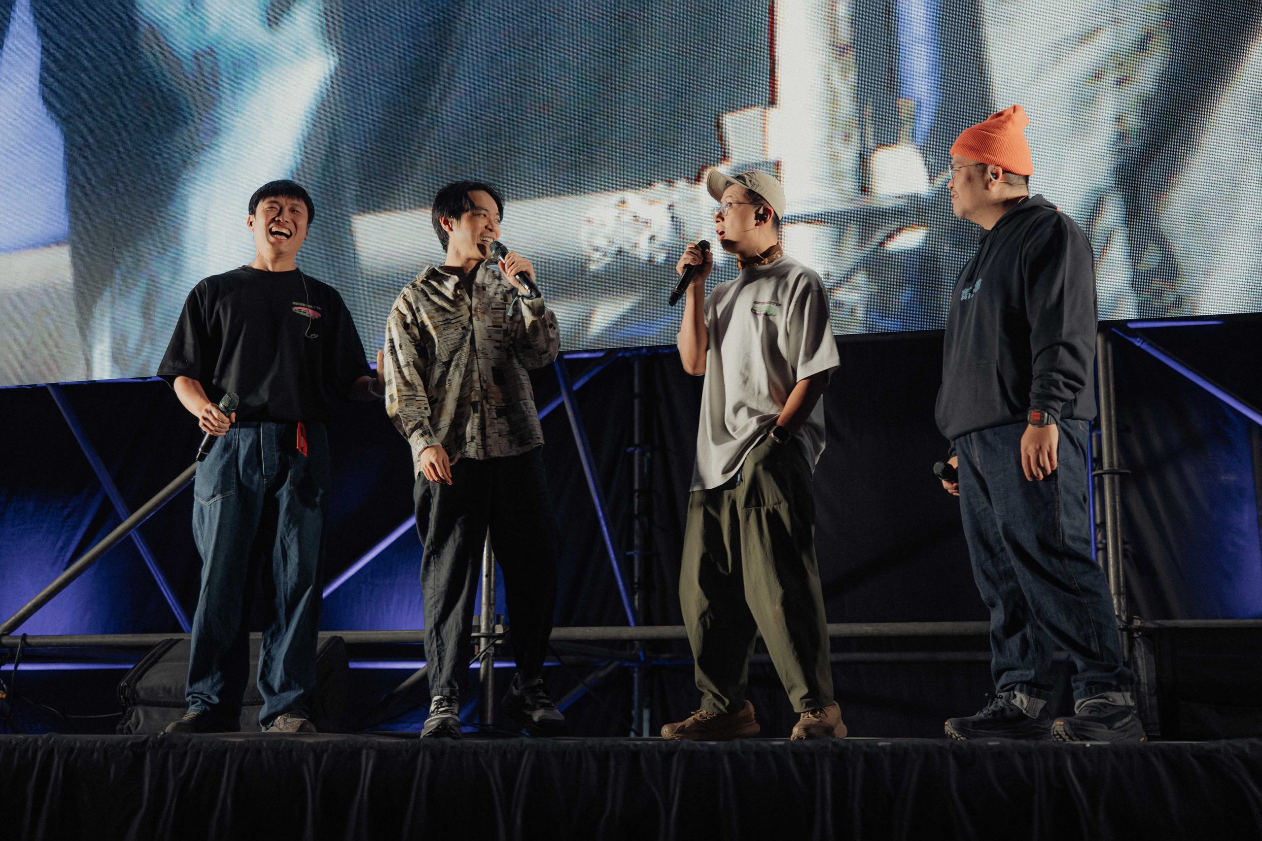 與 YOYO 家族一樣,今年負責主舞台串場的還有《台灣通勤第一品牌》主持人逞誠、呱吉,以及顏社創辦人迪拉組成的「新世代男子團體」。三人不僅分享斥資 600 萬打造,預計明年第一季上檔的世界行腳節目《寰宇龍虎豹》,還特邀同屬「三人男團」的拍謝少年成員宗翰,大聊兄弟組團甘苦談。