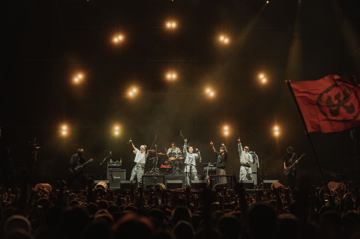 「火舞台」壓軸登場的日本龐克搖滾天團 WANIMA,被稱作「熱血的代名詞」。2010 年成立於日本熊本,是少數能把主流市場與龐克樂迷同時收服的樂團。甫登台便甩出多首金曲,包含《七大罪 戒律的復活》主題曲〈シグナル〉、電影《ONE PIECE FILM GOLD》主題曲〈GONG〉,主唱 KENTA 丟下一句:「我只說一件事喔-今天要跳舞!」便繼續演唱激昂演唱。