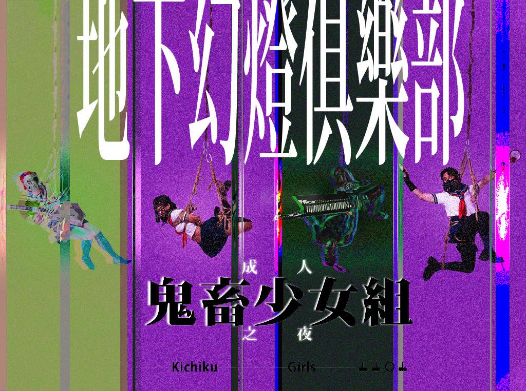 「地下幻燈俱樂部」將以 BDSM 文化與音樂為核心,演出陣容除了鬼畜少女組,還有來自東京的 4 人女子樂團 Kinoco Hotel,由主唱兼鍵盤手 Marianne Shinonome 領軍,融合了六O年代的破音吉他、龐克、新浪潮、迷幻車庫,以及令人上癮的節奏元素。