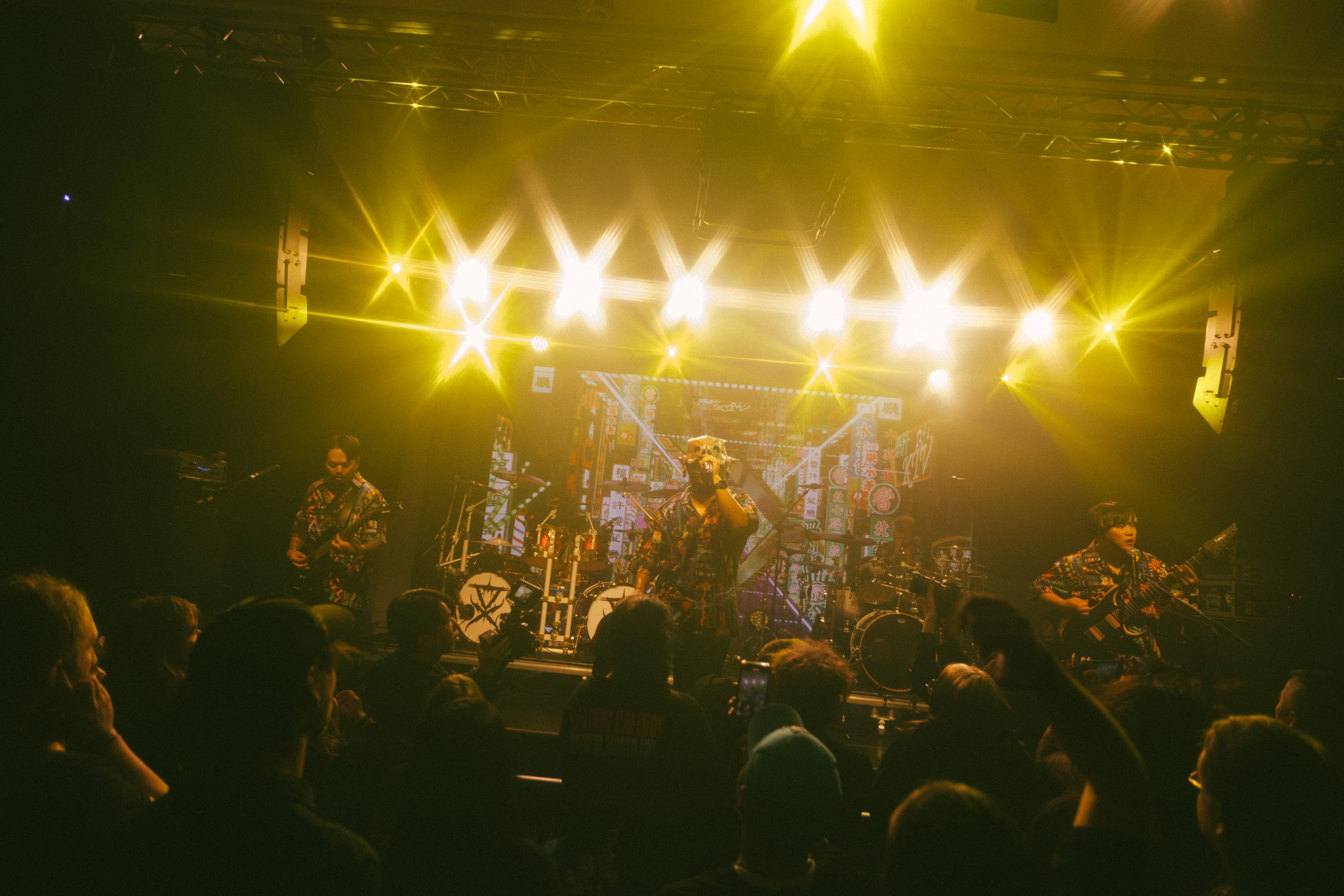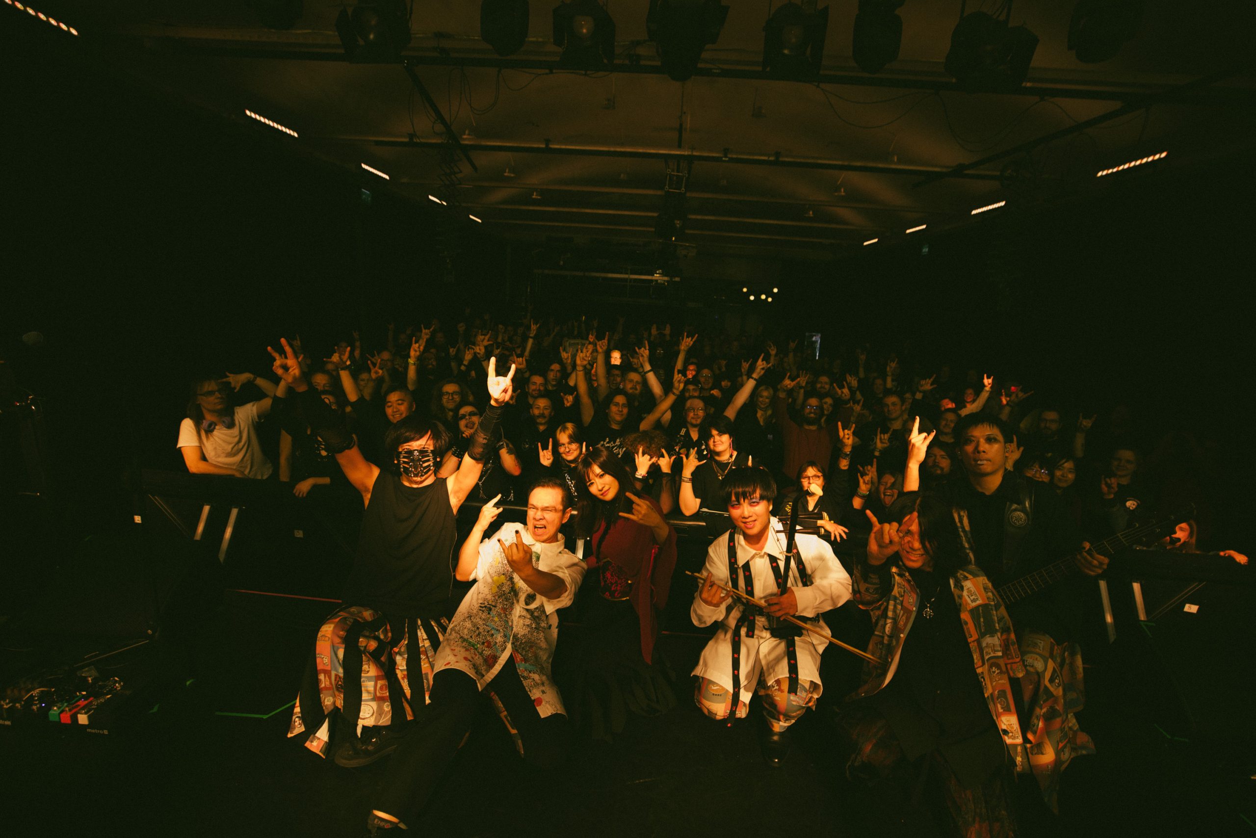 每次登台都能轟炸現場的血肉果汁機,即便來到高緯度國家,依舊展現他們強勁台式金屬能量。頂著招牌豬頭造型的主唱 GIGO 一上場,立刻展現炸裂嘶吼聲,瞬間點燃全場氣氛,隨著負責舞台視訊美術設計的 VJ 紀昀,以大量台灣地景、宮廟、招牌和歷史建築點綴,更讓整場演出台味到底。