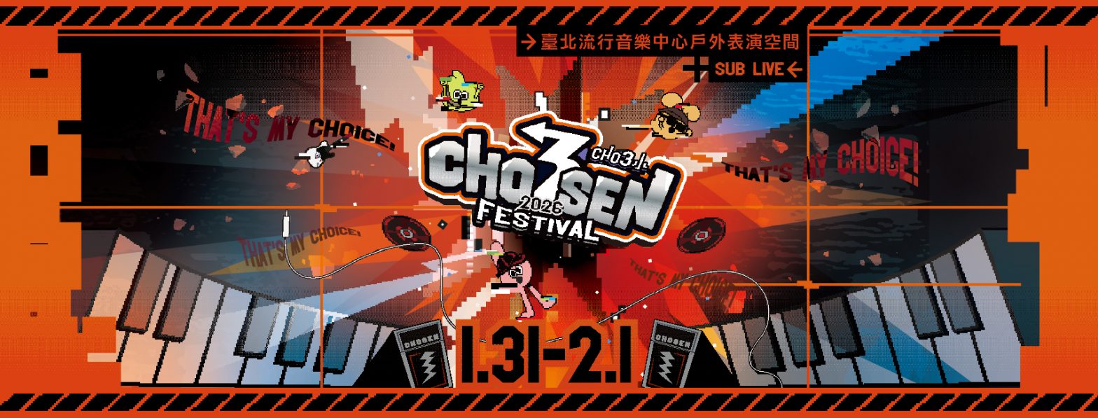 今年「CHOSEN CHO3小 S2」六場系列演出以滿滿能量劃下句點,新世代的聲音仍持續發酵。主辦單位氪米厘娛樂宣布,2026 年將把這股熱力推向更大規模,全新升級的「2026 CHOSEN FESTIVAL」將於 2026 年 1 月 31 日至 2 月 1 日在臺北流行音樂中心戶外表演空間與 SUB LIVE 開唱,以雙日雙舞台集結 26 組卡司,打造屬於新世代的年度音樂選擇。