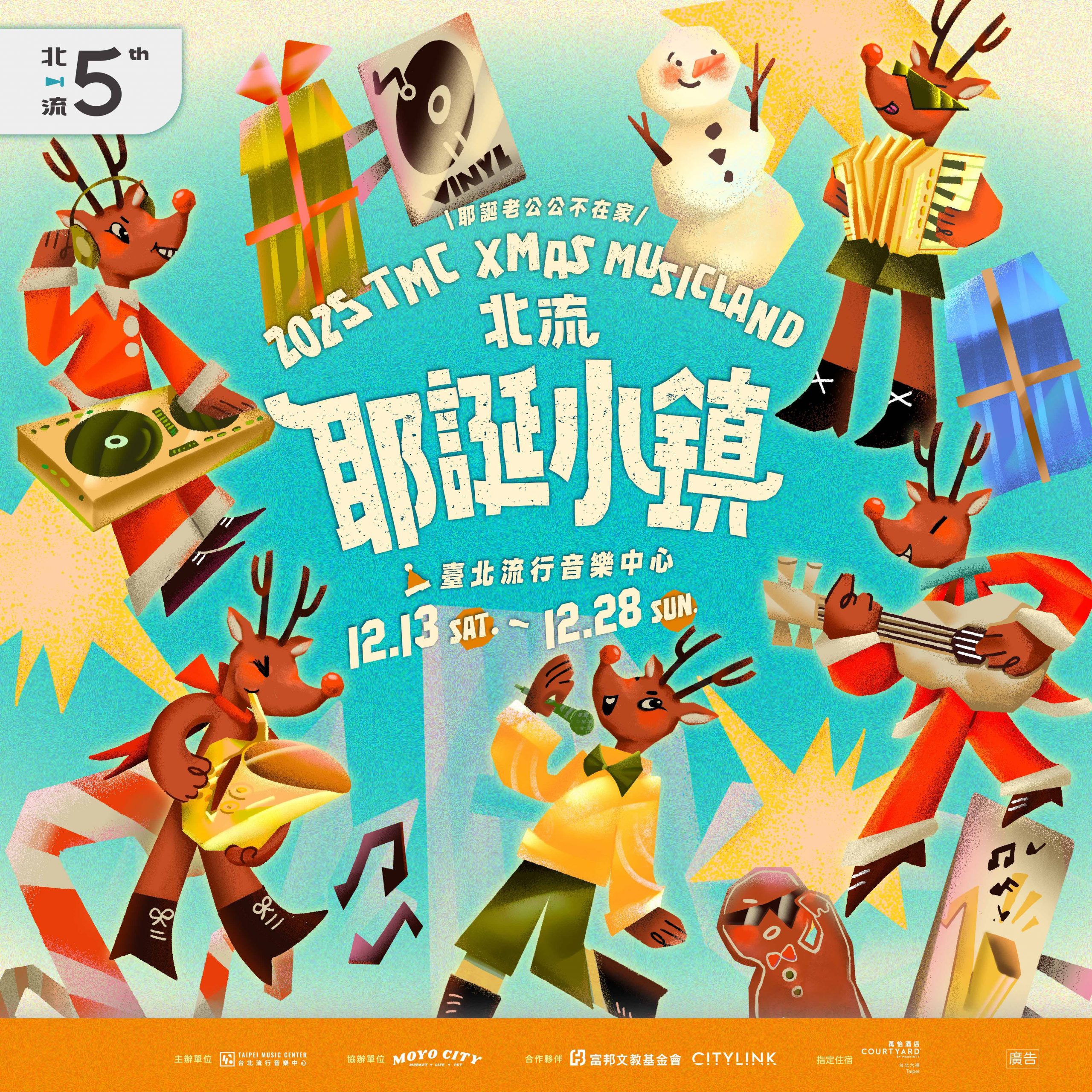2025 北流耶誕小鎮今年以全新主題「耶誕老公公不在家」回歸,宣布將於 12 月 13 日起正式展開一連串冬季活動,包含 12 月 13、14 日暖身派對「行動代號:麋鹿大集合」、12 月 20、21 日系列主活動「耶誕音樂嘉年華」,以及 12 月 19 至 21 日、24 至 28 日「小鎮市集」,系列活動即將在臺北流行音樂中心文化館、SUB 舞台以及全園區店鋪盛大登場。