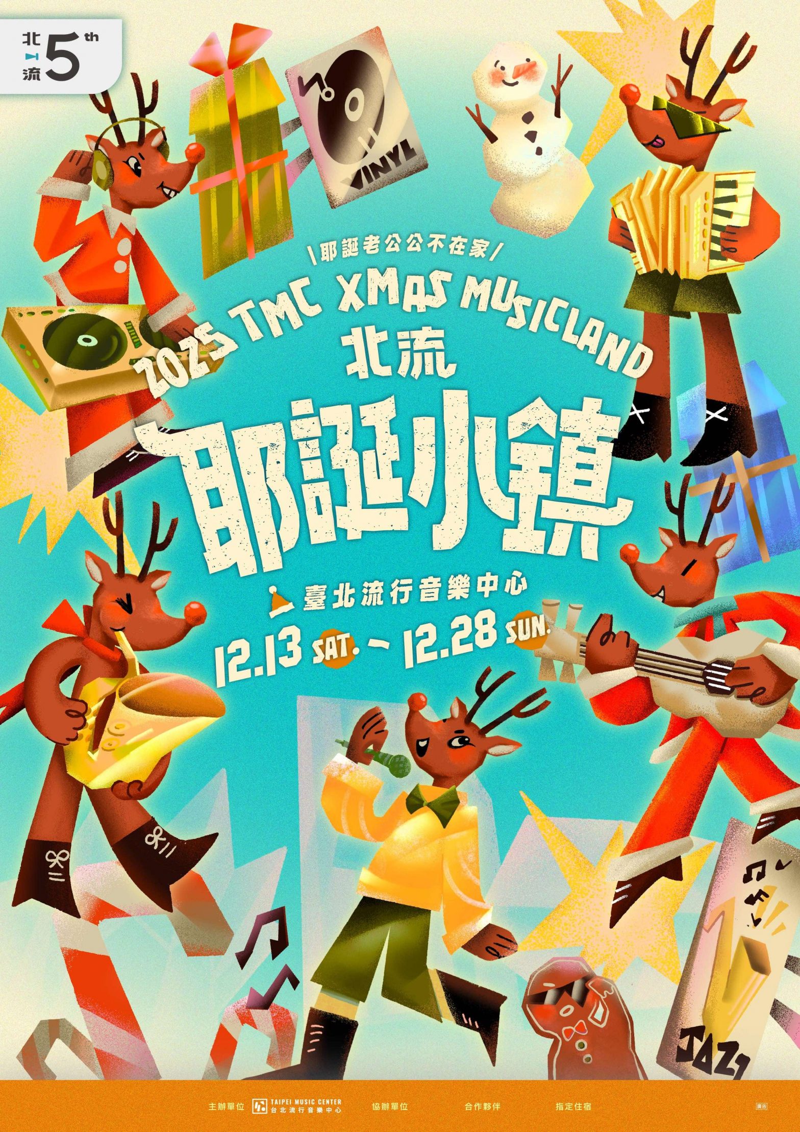 2025 北流耶誕小鎮今年以全新主題「耶誕老公公不在家」回歸,宣布將於 12 月 13 日起正式展開一連串冬季活動,包含 12 月 13、14 日暖身派對「行動代號:麋鹿大集合」、12 月 20、21 日系列主活動「耶誕音樂嘉年華」,以及 12 月 19 至 21 日、24 至 28 日「小鎮市集」,系列活動即將在臺北流行音樂中心文化館、SUB 舞台以及全園區店鋪盛大登場。