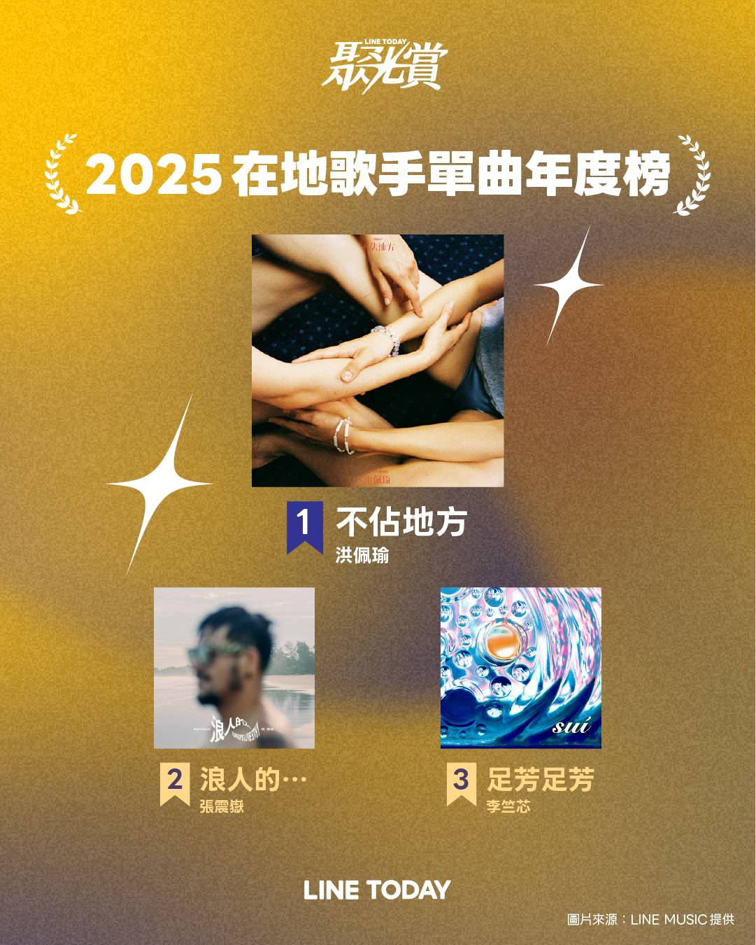 《LINE TODAY 聚光賞》繼 2024 年公佈影視年度前十大作品後,今年正式跨足音樂領域,推出「2025 在地歌手單曲年度榜」與「2025 全球單曲年度榜」。