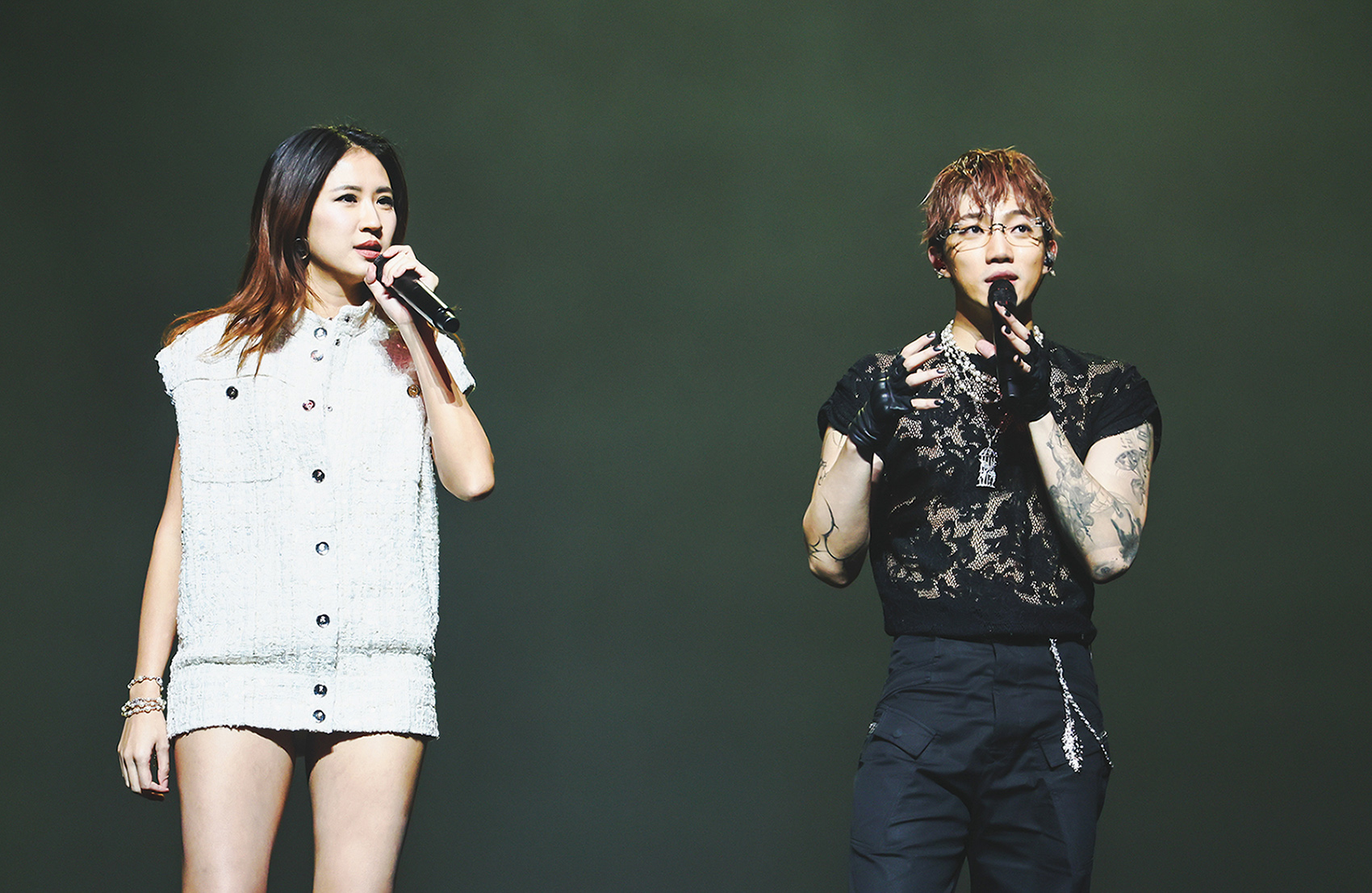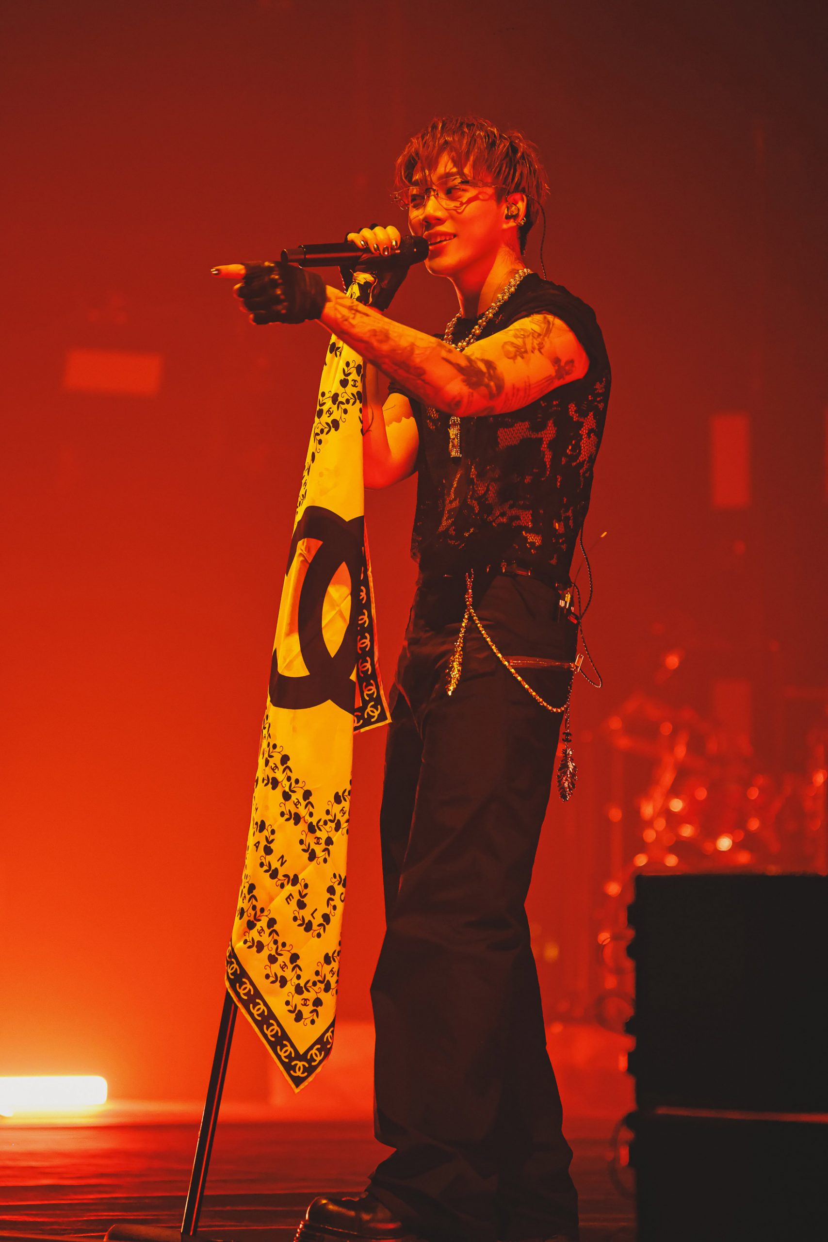 這場北流演唱會一開場就話題十足,ØZI 直接溜著直排輪登台,為整晚演出揭開序幕,造型則走高雅性感路線,一襲黑色外套,搭配外套裡的黑色蕾絲半透明上衣。現場不斷聽到觀眾此起彼落喊著要他「脫」,讓他忍不住笑說:「你們大家是為了看我來脫衣服的嗎?」面對歌迷的熱情反應,他也直呼:「你們真的有點太恐怖了。」