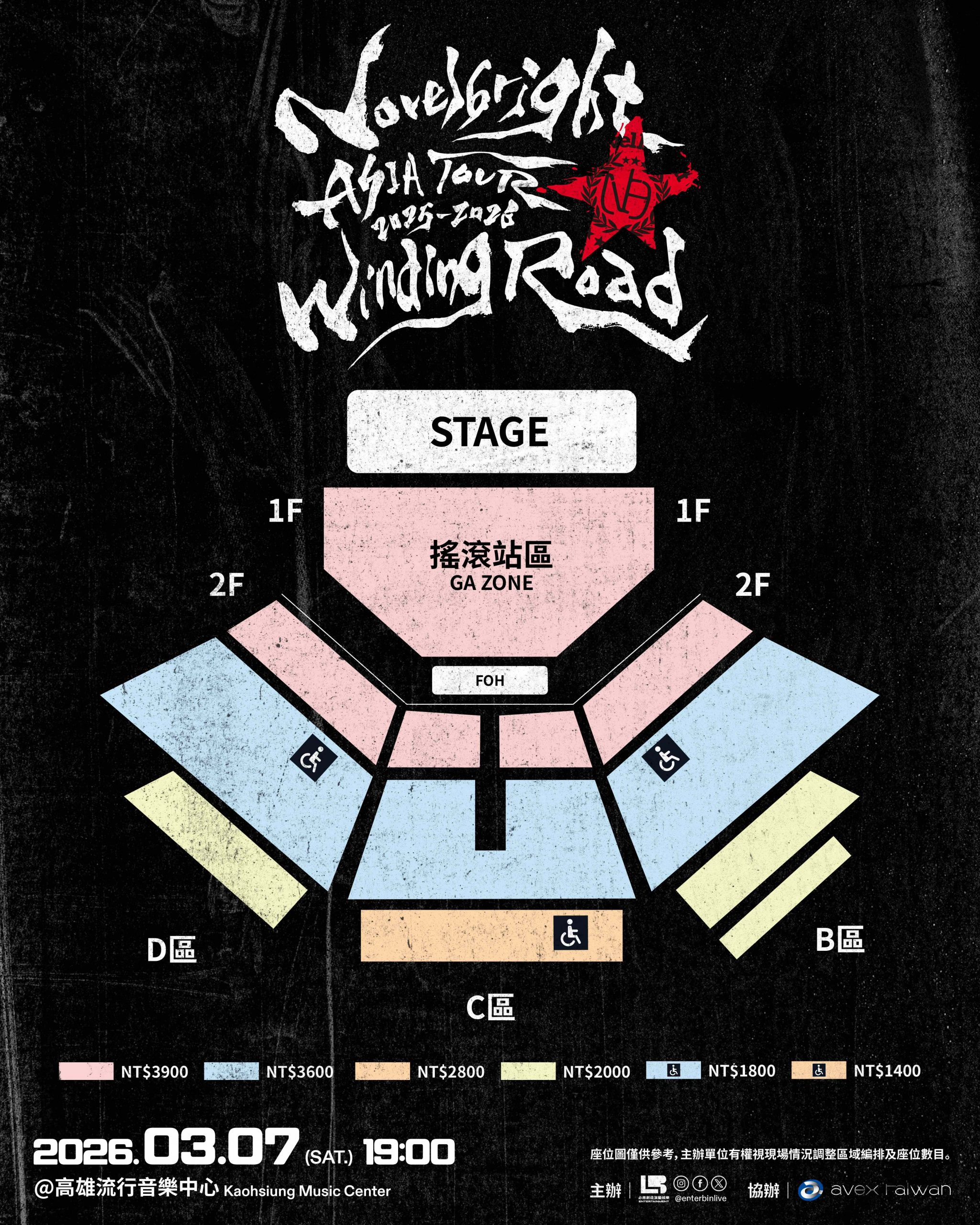 票價|NT$ 3,900 / 3,600 / 2,800 / 2,000 / 身障席 NT$1,800 / 身障席 NT$1,400