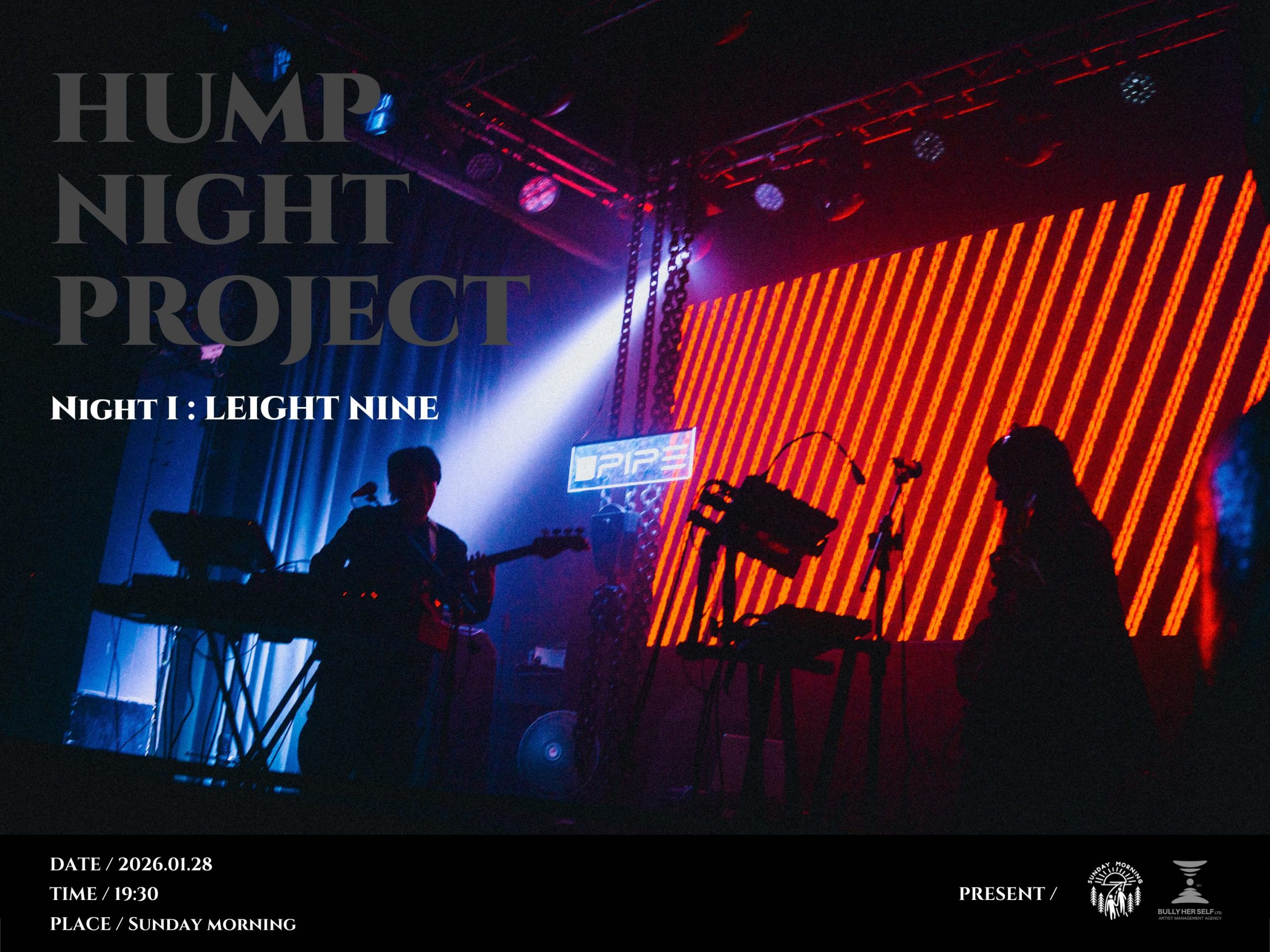 在社群網路和速食娛樂乍現反彈跡象的 2026 年初,由非人物種主唱阿顯經營的咖啡廳 Sunday Morning 和其經紀人 Bully 創辦的不利自己有限公司,帶著汲取自千禧年台灣獨立音樂場景的養分、與當時累積至今的玩團和從業經驗,攜手開啟《Hump Night Project》,致力於帶回智慧型手機普及之前:以線下交流為主的現場演出體驗。