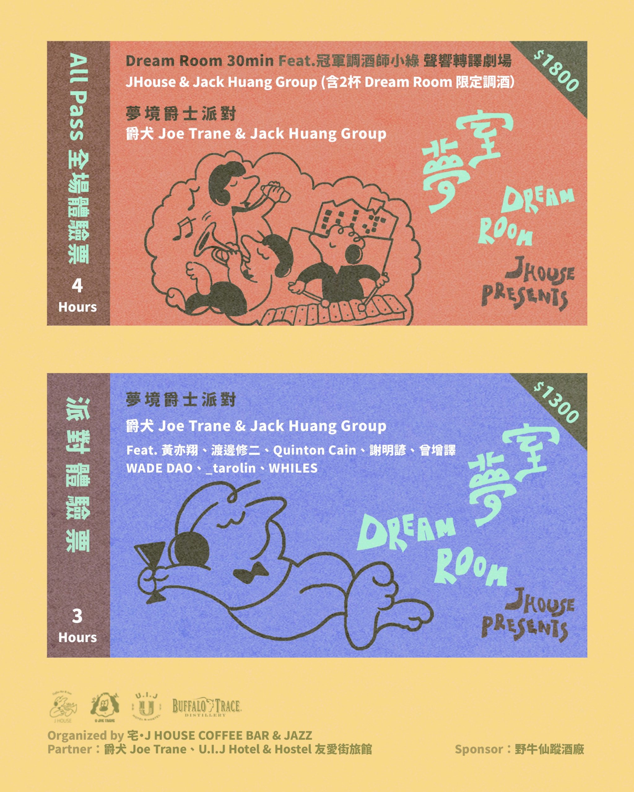 【夢室 Dream Room / JHOUSE PRESENTS Feat. Jack Huang、爵犬、冠軍調酒師小綠、U.I.J Hotel & Hostel 友愛街旅館】