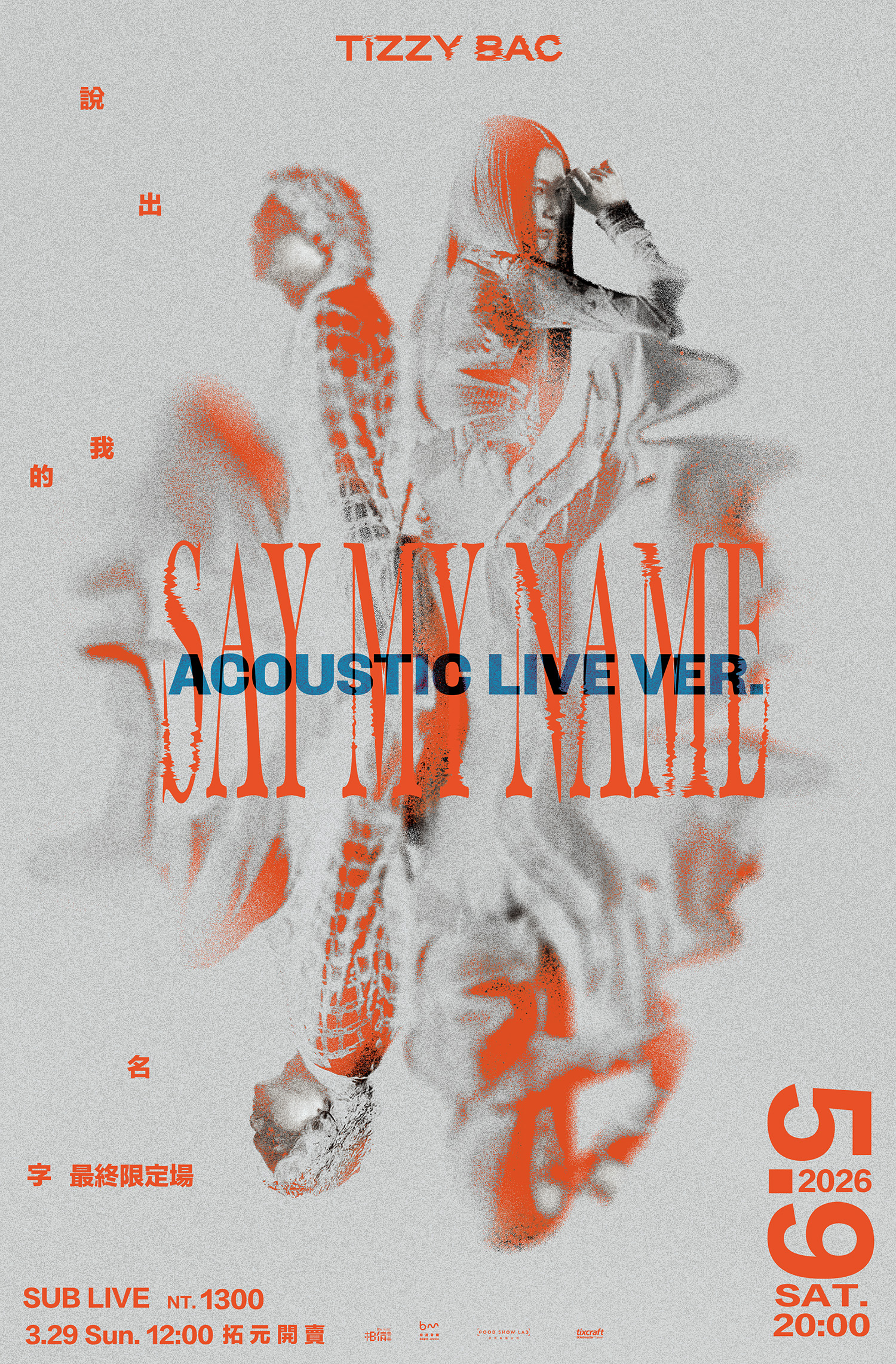 Tizzy Bac《說出我的名字》巡迴演唱會自台北啟程,陸續唱進台中、高雄、北京、上海等城市,累積 16 場演出,宣布加碼推出《說出我的名字》最終限定場「ACOUSTIC LIVE」,將於 5 月 9 日在 SUB LIVE 開唱。Tizzy Bac 坦言,這場演出讓他們壓力爆棚,形容宛如挑戰自己「素顏」上台!