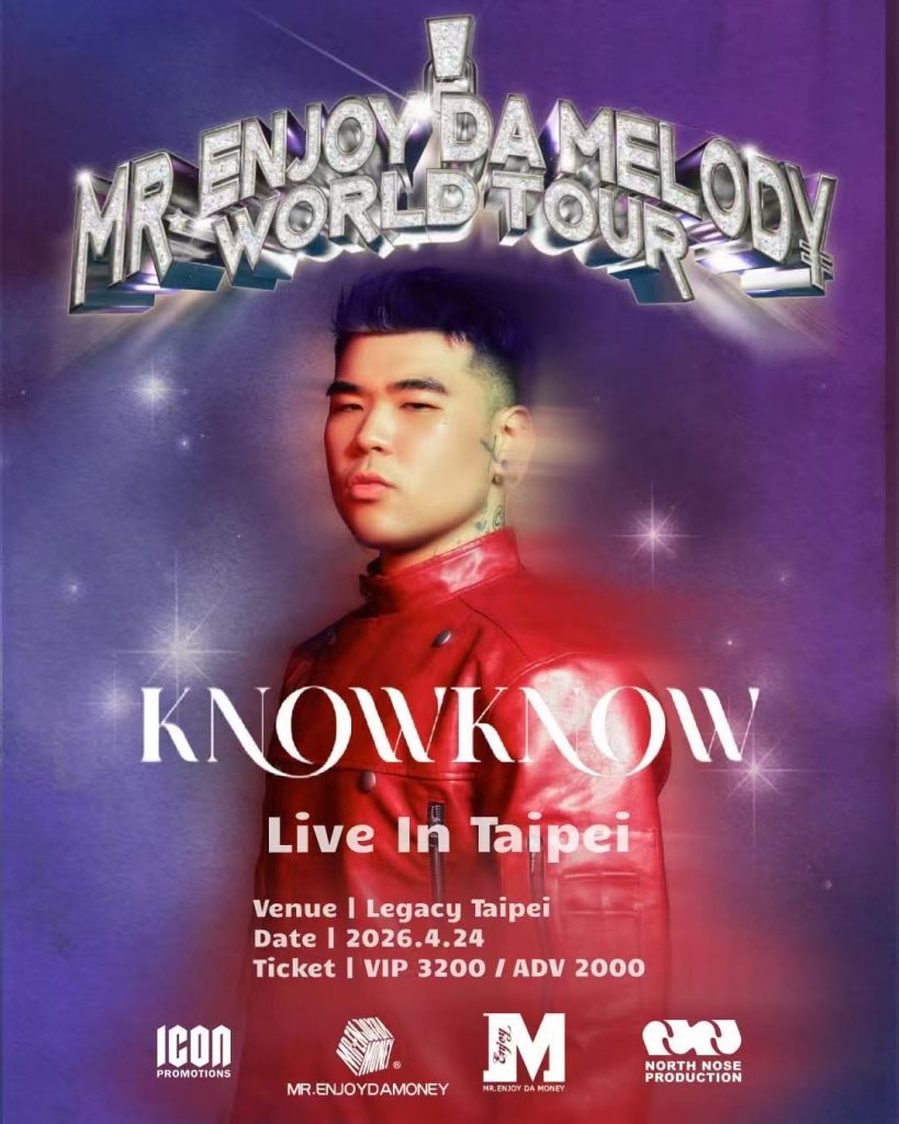 身為成都代表饒舌團體一員,在 Higher Brothers 中以旋律饒舌與節奏掌控見長,曾登上《紐約時報》、《富比士》等國際報導的嘻哈音樂人 KnowKnow 即將帶著全新巡演企劃登陸台北!「KnowKnow – MR. ENJOY DA MELODY WORLD TOUR LIVE IN TAIPEI」將於 2026 年 4 月 24 日在 Legacy Taipei 登場,本次台北站將以樂團編制與全新編曲呈現,而 KnowKnow 更邀請好友——曾合作單曲〈Pull Up〉,近期在《披荊斬棘2025》合作的熱狗 MC HotDog 擔任嘉賓,令樂迷們相當期待!