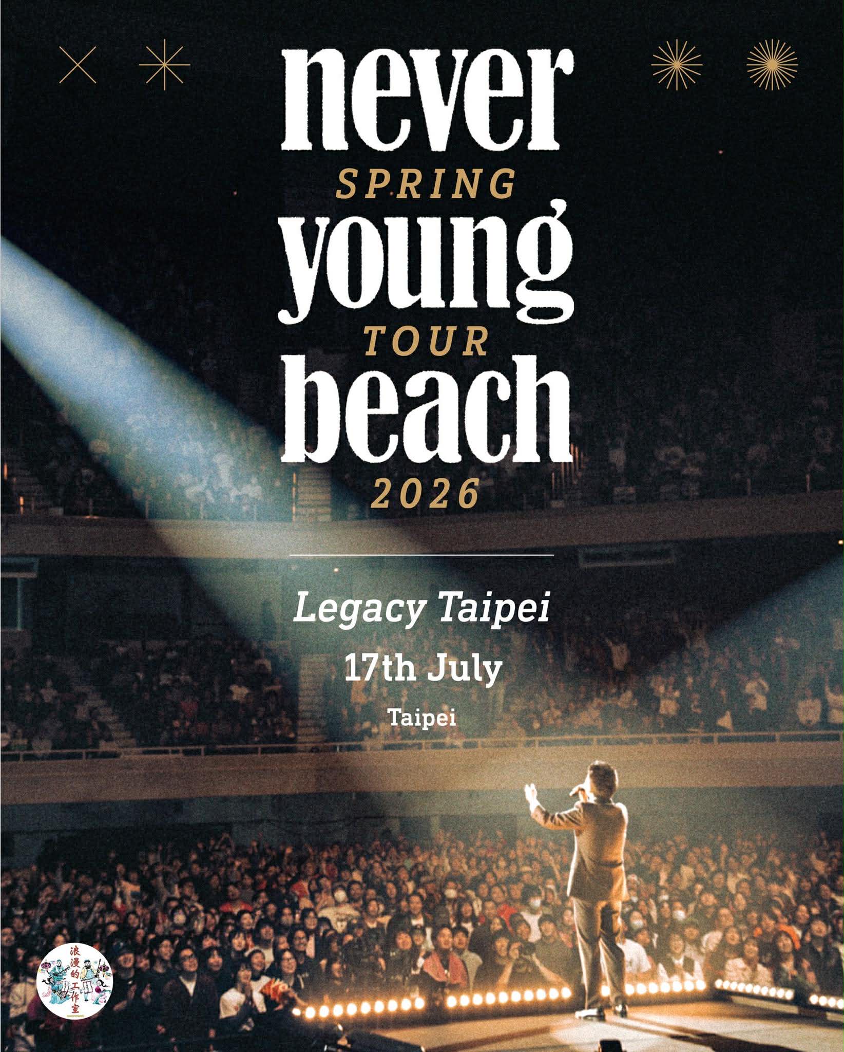 時隔三年,never young beach 將攜新曲再次回到台灣演出,於 7 月 17 日台北 Legacy 舉辦「never young beach Spring Tour 2026 in Taipei」專場!