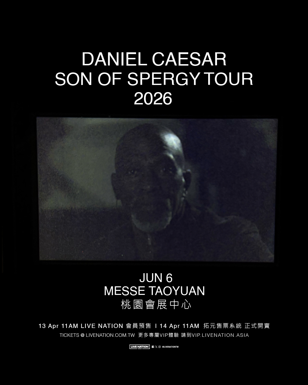世界巡迴《Son of Spergy Tour》將打造屬於 Daniel Caesar 的情感脈絡,從溫柔內斂到張力十足的現場編制,帶領觀眾進入極具專屬 Daniel Caesar 的音樂宇宙,一起沉浸在旋律中,展開與自我的對話。