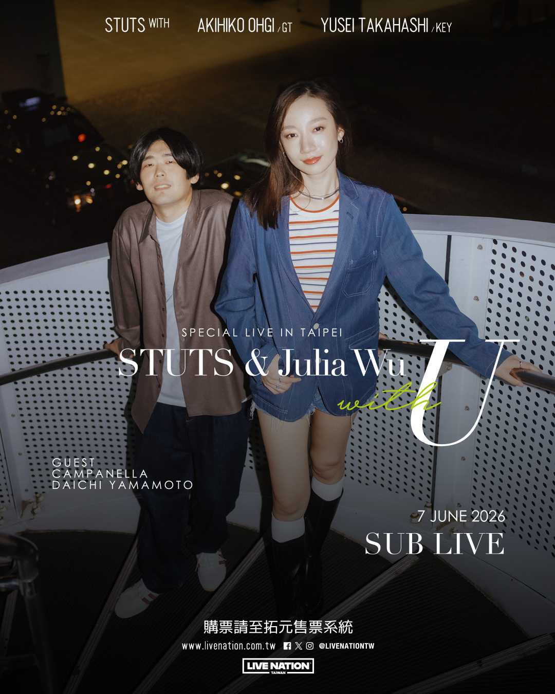 橫跨音樂製作、現場演出與多元跨界合作,日本當代最具代表性的鬼才製作人 STUTS 將攜手新華流都會女聲代表 Julia Wu 吳卓源,帶來一夜限定的《STUTS & Julia Wu – “With U” Special Live in Taipei》,於 6 月 7 日 SUB LIVE 動人開唱。