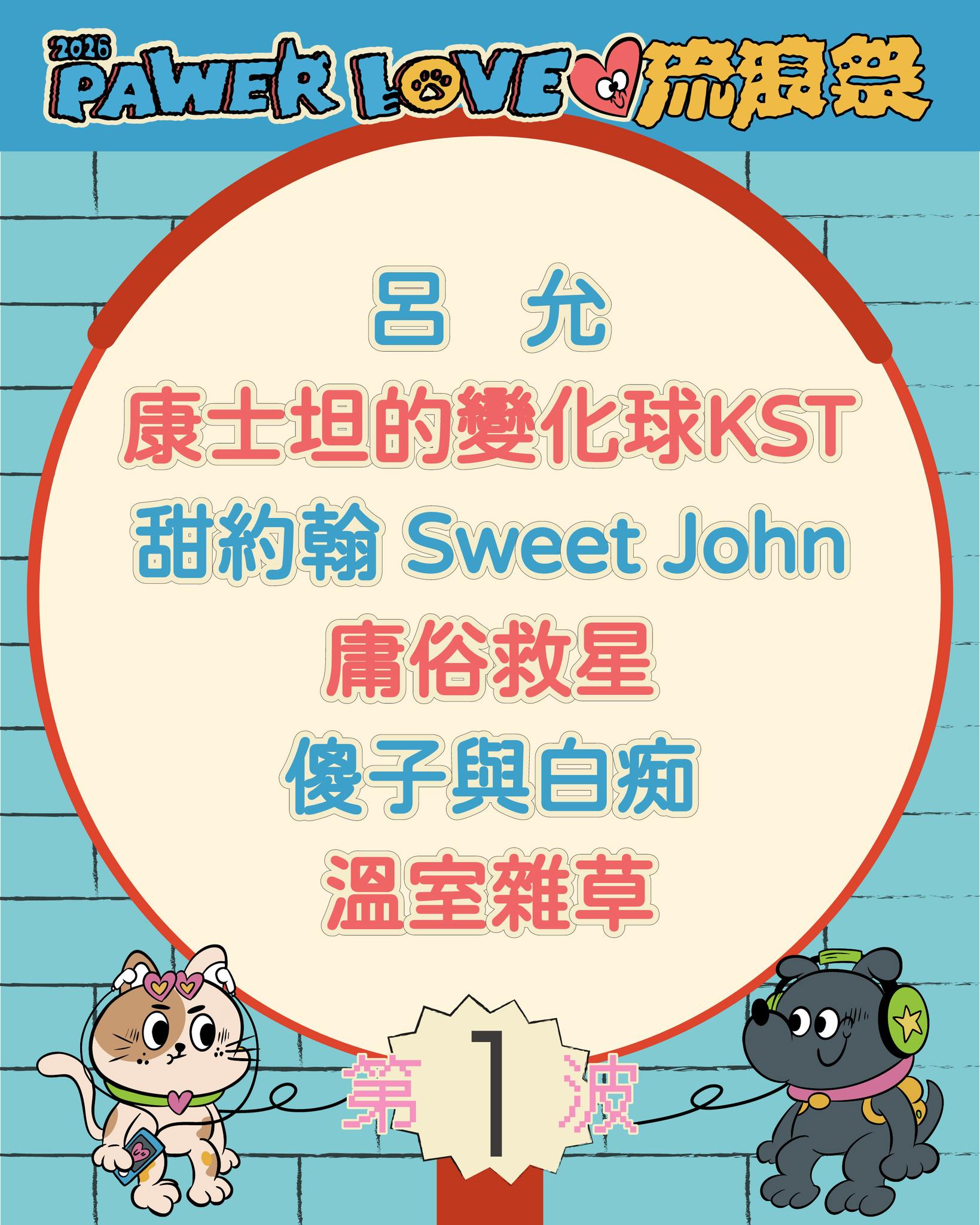 首波公布陣容:呂允、甜約翰Sweet John、傻子與白痴、溫室雜草、庸俗救星、康士坦的變化球KST(其他卡司將陸續公布)